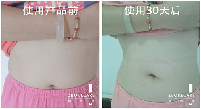 使用后:使用活力緊俏精華產(chǎn)品 30 天后,腹部收緊,皮膚變白變嫩,腰圍測量數(shù)據(jù)為 71 厘米,減下來 13 厘米。