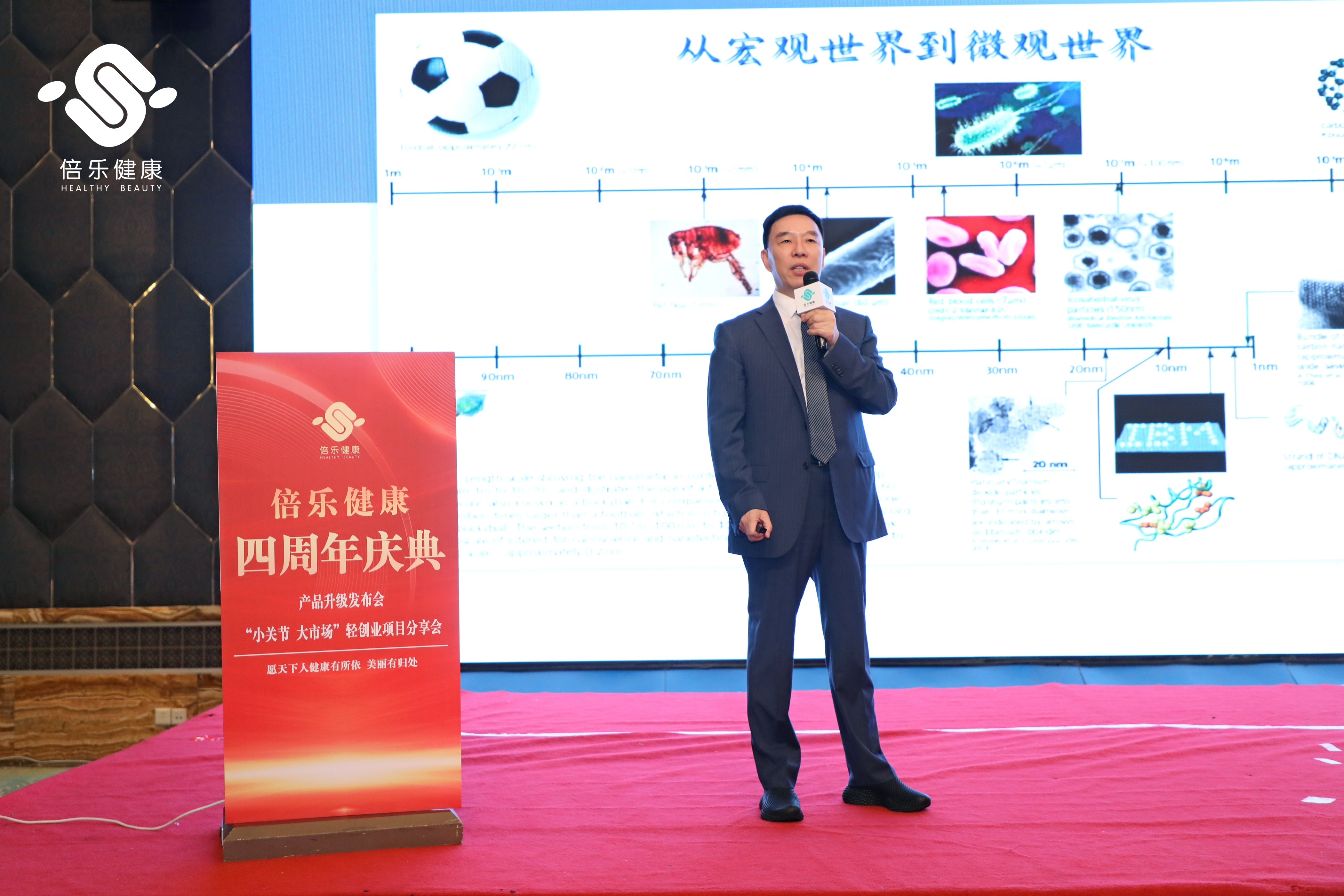 創(chuàng)新是企業(yè)發(fā)展的動(dòng)力,市場(chǎng)是企業(yè)生存的必需。隨著技術(shù)講解的落幕,杭州倍樂(lè)健康科技有限公司董事長(zhǎng)-龔麗偉上臺(tái)將觀眾引入本次活動(dòng)的第二個(gè)主題——“小關(guān)節(jié) 大藍(lán)海”輕創(chuàng)業(yè)項(xiàng)目。