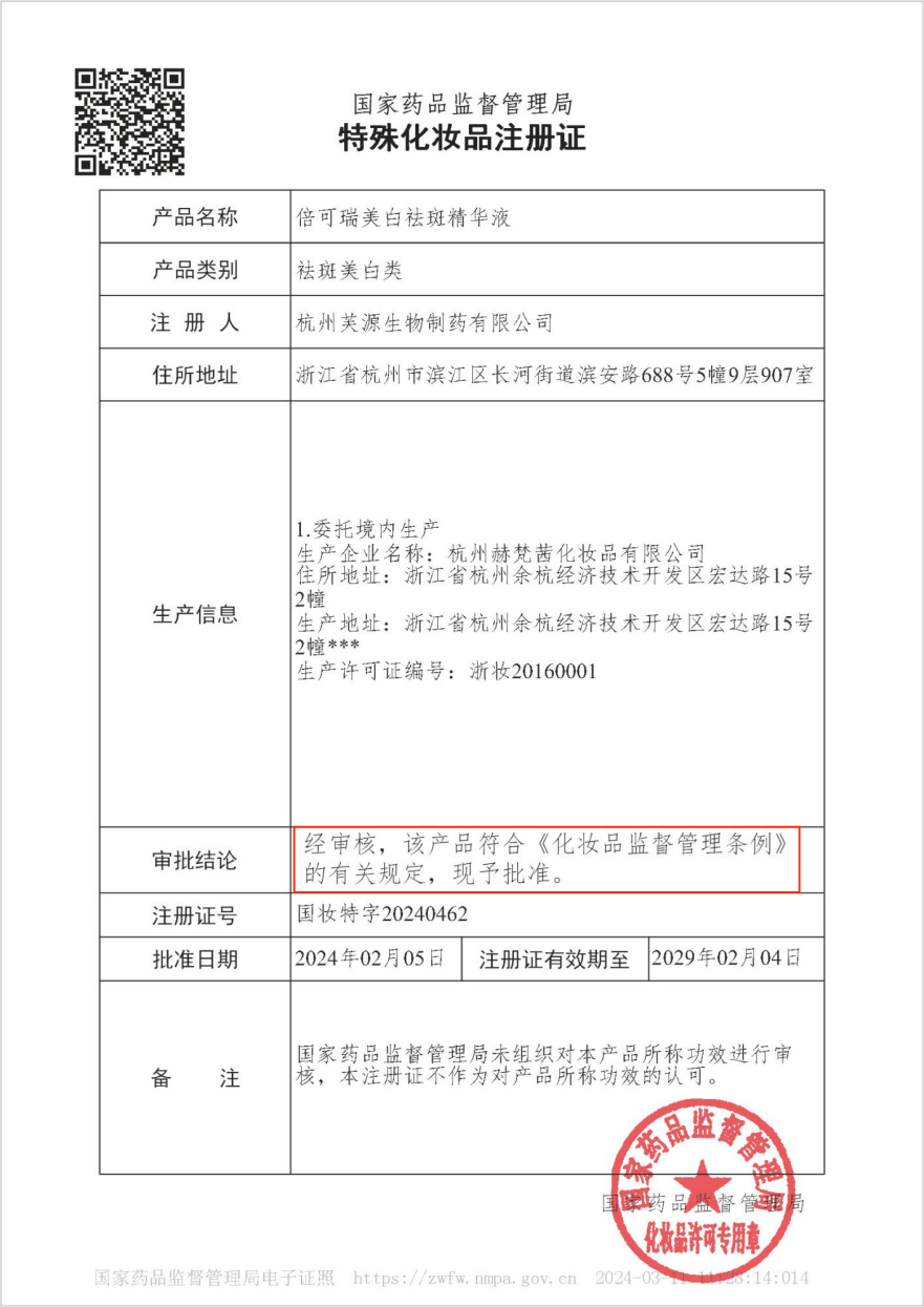 根據(jù)2021年我國特殊化妝品新規(guī),美妝類特殊化妝品須通過監(jiān)管部門的多項檢測、審核要求,進(jìn)行人體親測,且產(chǎn)品達(dá)到安全和功效要求后方可獲批,從申請到拿證,時間長達(dá)18個月。持新證上崗的倍可瑞產(chǎn)品,標(biāo)志著其功效、安全達(dá)到了我國人體親測要求,消費者可以毫無顧慮地購買使用。