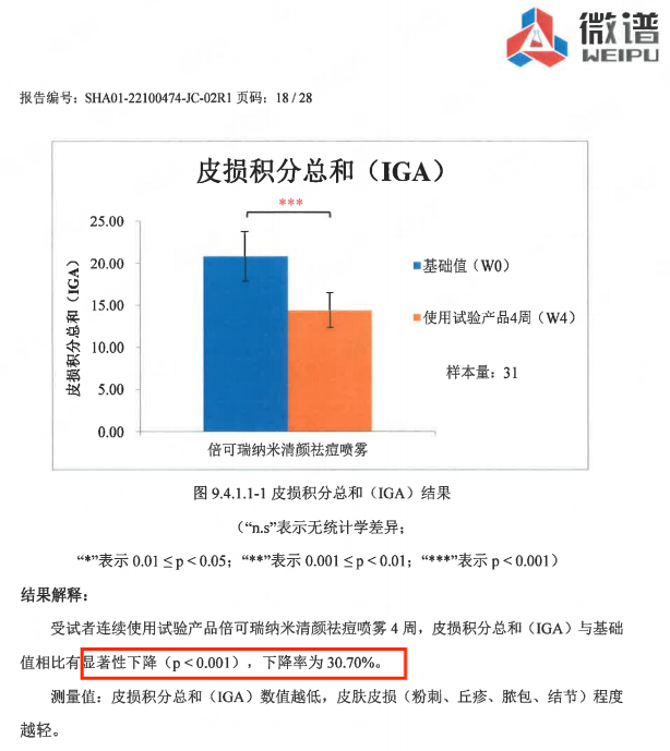 倍可瑞®納米清顏祛痘噴霧功效報告2